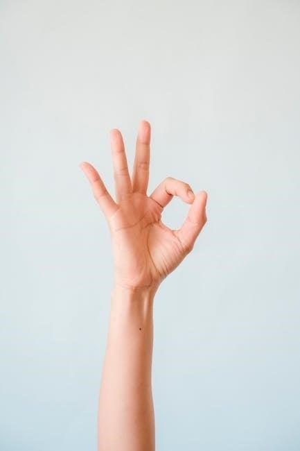 Hold each thumb-to-finger contact briefly, feeling a gentle stretch in the thumb’s muscles․ Repeat this sequence several times․ PDF guides often suggest using your other hand to gently guide the thumb if needed, ensuring a controlled movement․ These exercises improve dexterity and range of motion․ Consistent practice, as outlined in the PDF, is crucial for recovery․