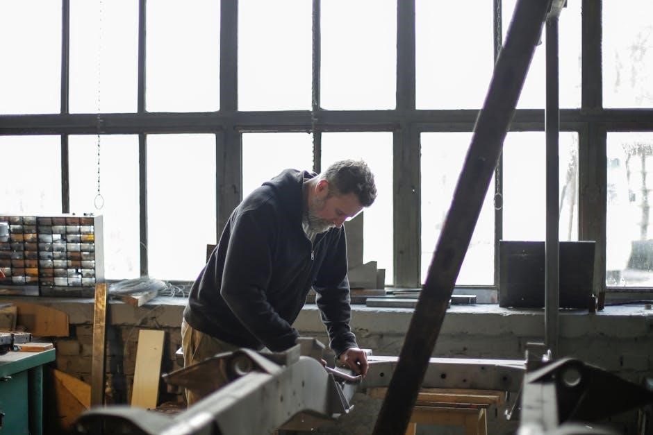 The manual provides guidance on adjusting steering linkage for optimal responsiveness and minimizing play. It includes torque specifications for all fasteners, ensuring secure connections. Troubleshooting sections address common issues like loose steering or difficulty turning, referencing specific part numbers for replacements.